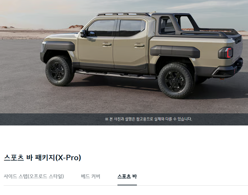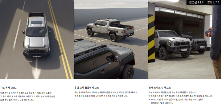 위 표에 나온 2025 기아 타스만 선택 옵션 및 순정 액세서들은 특히 출고 후 재장착이 어렵기 때문에, 처음 계약 시 꼭 고민해보시는 걸 추천합니다.