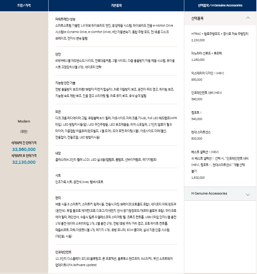 | 현대 싼타페 하이브리드 2023년형 주요 사양 및 선택 옵션 (0) | 2024.05.22 |