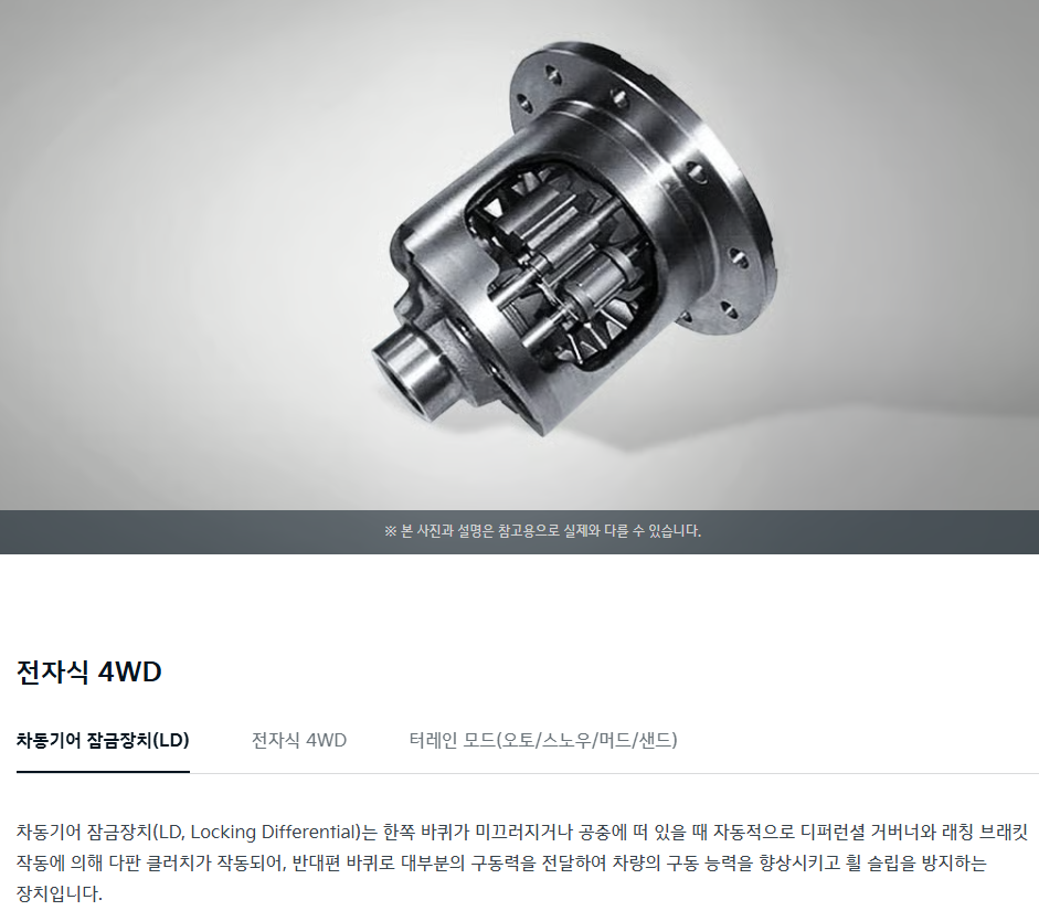 | 전자식 4WD | 자동기어 잠금장치, 전자식 4WD, 터레인 모드(오토/스노우/머드/샌드) | ₩2,650,000 |